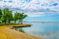 The lake stretches north to south over a distance of 22 miles (36 km) while reaching a maximum width of 7.5 miles (12 km). The lake is shallow reaching a maximum depth of only 6 feet (1.83 m). The lake and wetlands are recognized by both UNESCO and the Ramsar Convention as Wetlands of International Importance.