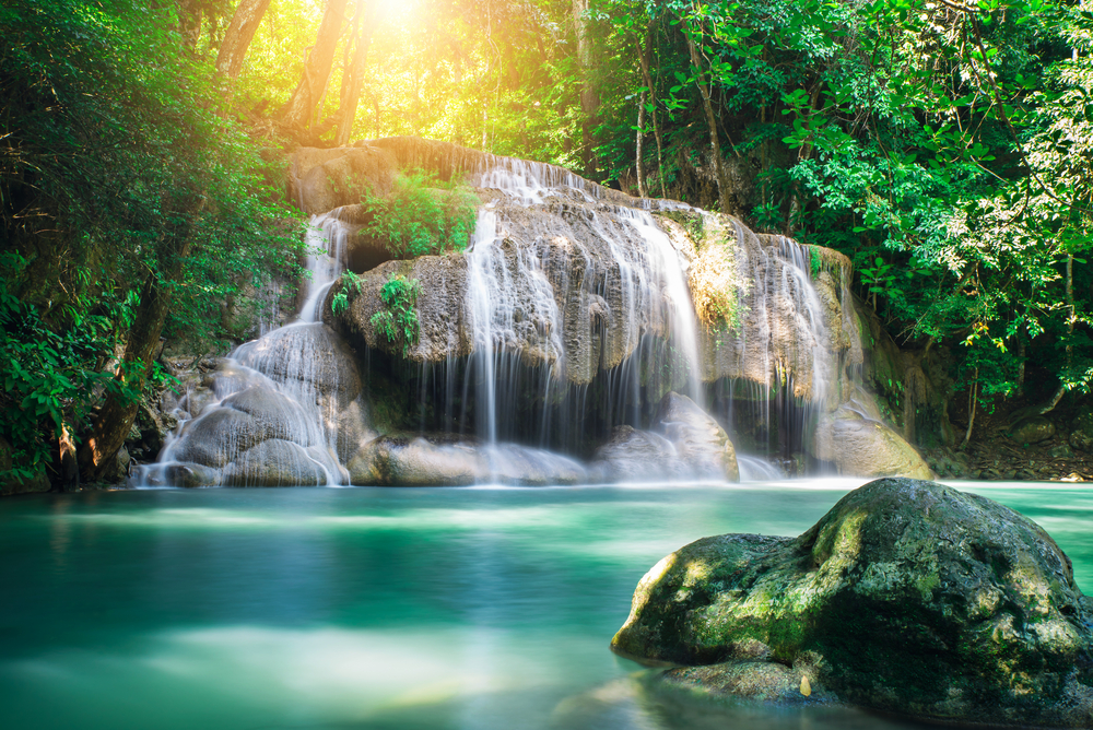 Erawan National Park is home to the seven-tiered Erawan Falls which is one of the most beautiful waterfalls in Thailand.